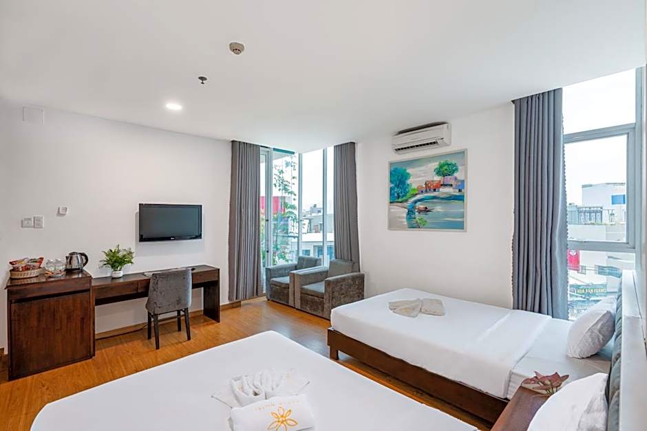 Providing free toiletries, this triple room includes a private bathroom with a bath, a shower and a bidet. The air-conditioned triple room provides a flat-screen TV with cable channels, a private entrance, soundproof walls, a mini-bar as well as city views. The unit offers 2 beds.
